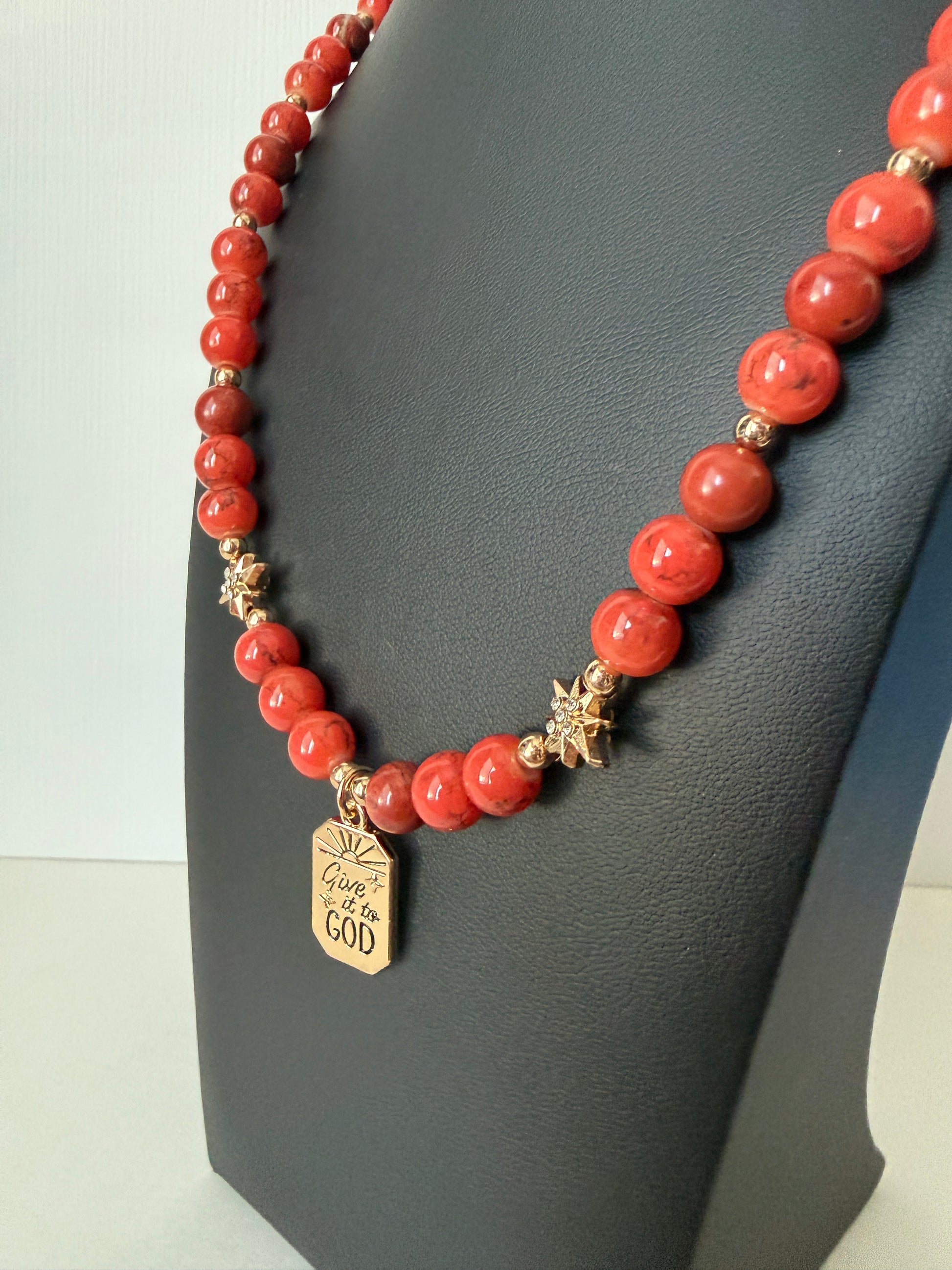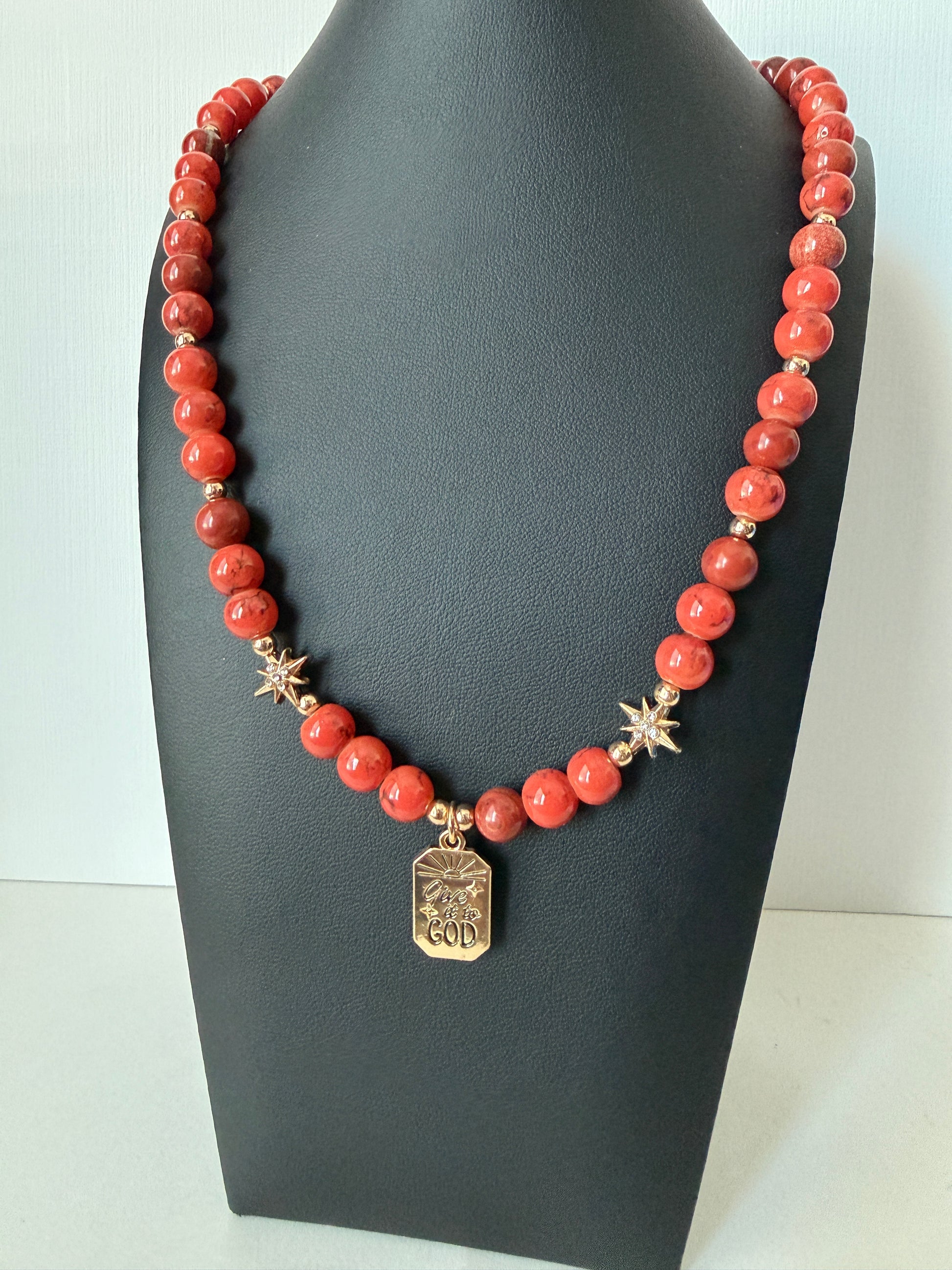 Rusty orange stone beads with golden star beads and charm